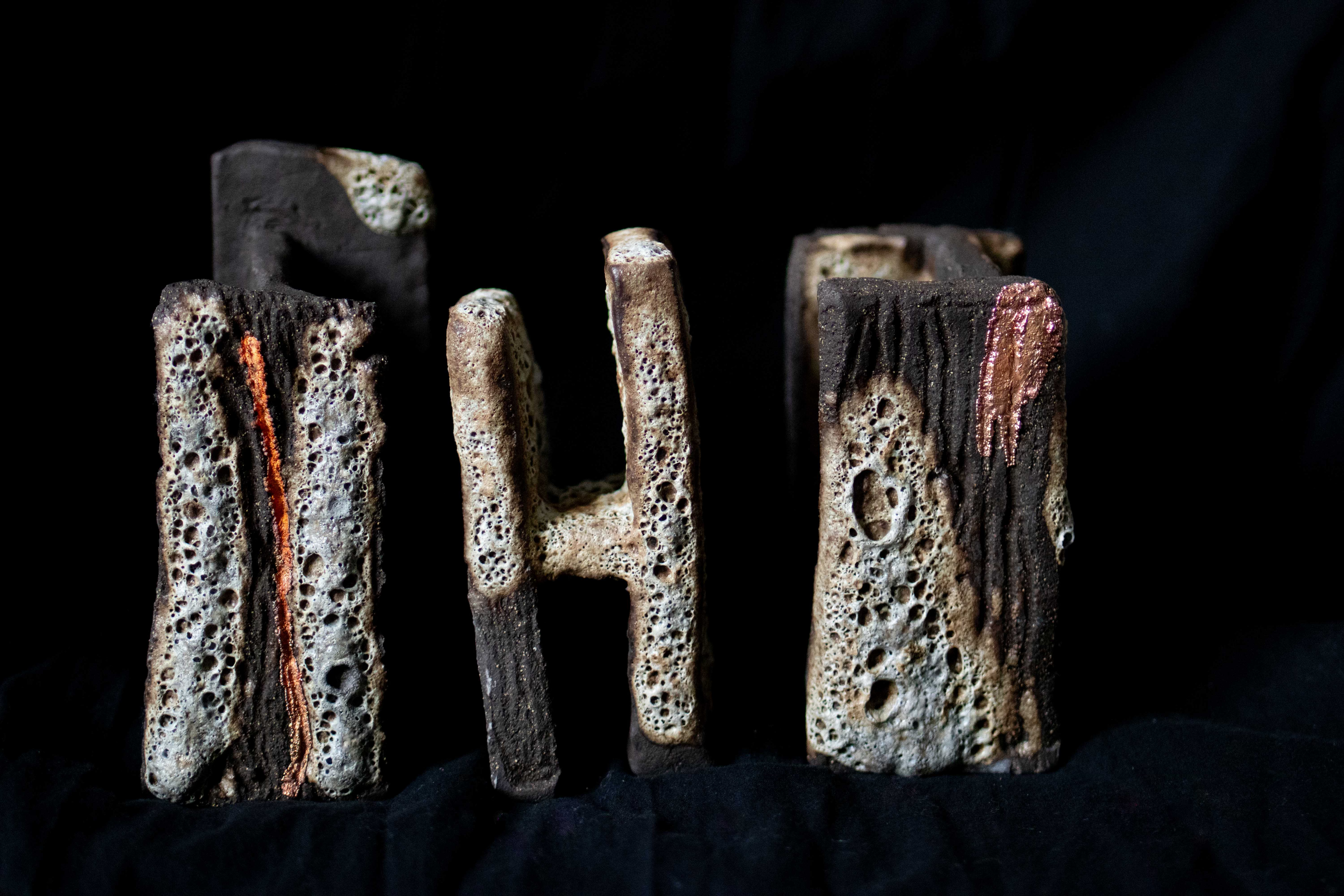 My work for this showcase was all about continuous transformations. I used the process of electroforming to add a layer of copper to the non-porous, fired clay. I imagine these pieces as building blocks of a far away civilization. We do not quite know how they were used or why they look the way they do. We do not quite understand how they fit together.