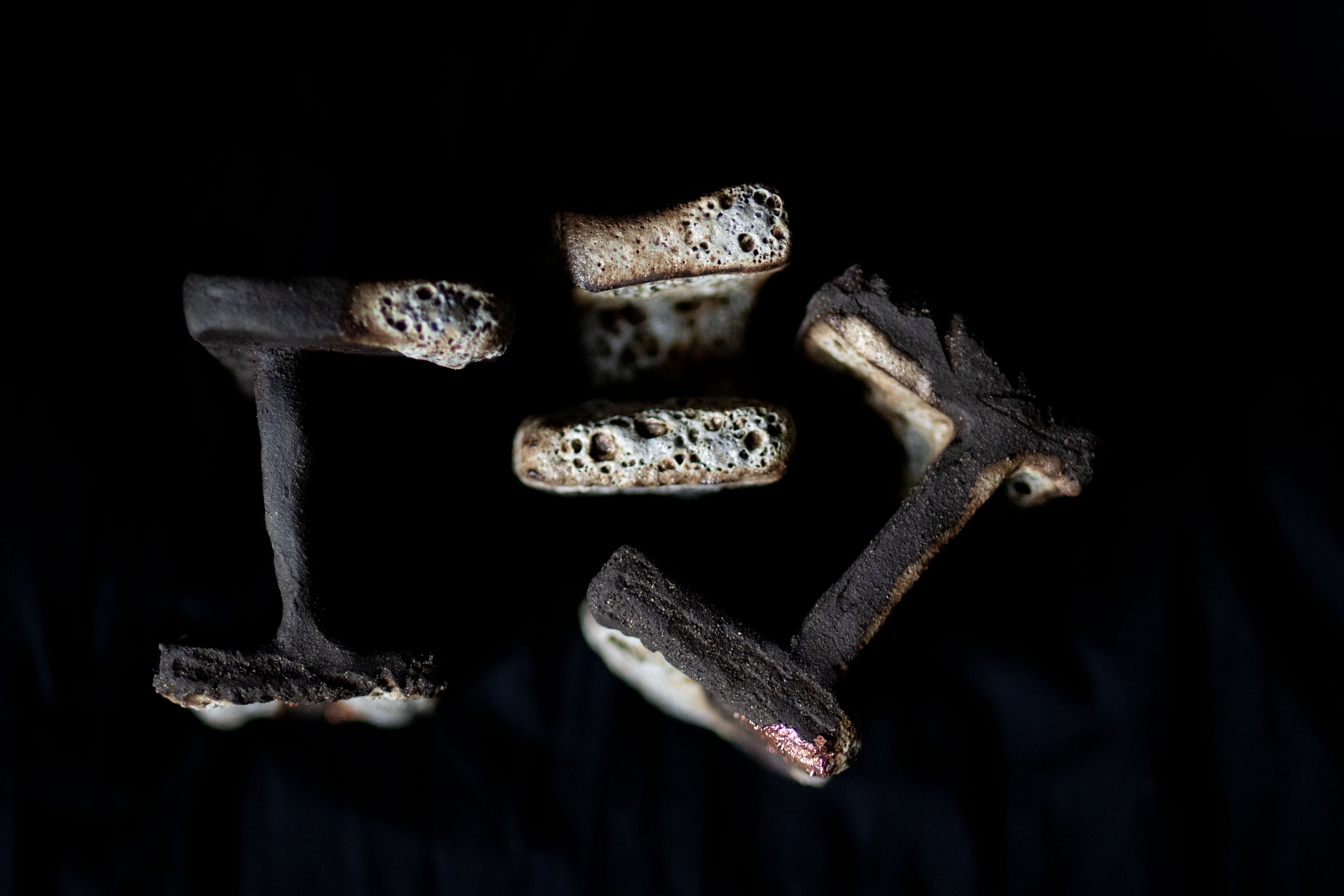 In this world, metal grows like ivy. These pieces were plucked away from a strange underground dig and are now kept in a secure space, temperature controlled. Whatever transformation was occurring has been stalled, interrupted. We now see them in an ongoing state, not quite what they could have become had they been left untouched for another millennium.